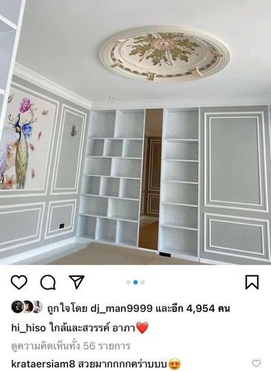 และล่าสุดเจ้าตัวได้โพสต์ภาพอัพเดตบ้านอีกครั้ง ซึ่งโชว์ให้เห็นการตกแต่งภายใน โดยเฉพาะอย่างยิ่งกับบริเวณห้องโถงเพดานสูงที่สวยอลังการถูกจริตเจ้าของบ้านเอามากๆ เพราะเจ้าตัวนั้นบอกว่า “ใกล้และสวรรค์ อาภา”