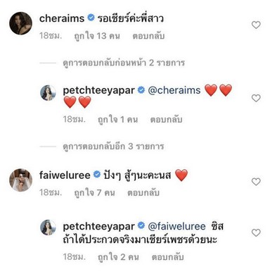 ซึ่งหลังจากที่เจ้าตัวได้โพสต์เรื่องนี้ เฌอเอม ชญาธนุส ผู้ที่เคยประกวดเวทีนี้เมื่อปี 2020 และ ฝ้าย มิสยูนิเวิร์สไทยแลนด์ปี 2014 ก็ได้เข้ามาส่งกำลังใจให้กับ น้ำเพชร พร้อมด้วยแฟนๆ ที่ติดตาม ก็ได้ส่งกำลังใจให้เธอได้ทำตามความฝันที่ตั้งใจไว้.