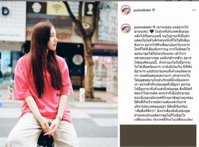 โดย ปุยเมฆ ได้โพสต์ข้อความผ่านอินสตาแกรมแบบยาวเหยียดว่า “(ยาวหน่อย แต่อยากให้อ่านนะคะ) ในช่วงที่ประเทศเดินถอยหลังไปเรื่อยๆแบบนี้ หนูในฐานะที่เป็นนักแสดงวัยรุ่นตัวเล็กๆ คนหนึ่งที่ไม่ได้มีเสียงดังมาก อยากให้พี่ๆ เพื่อนๆ น้องๆ ในวงการ ใครก็ได้ที่เสียงดังกว่าหนู หากไม่ติดอะไร ออกมาพูดได้ก็ช่วยๆ กันนะคะ เข้าใจว่าหลายคนอยากพูด แต่ยังกล้าๆ กลัวๆ อยากให้ลองคิดแบบนี้.. ตัวเราเองในวันนี้อาจจะไม่ได้เดือดร้อนมาก เรายังมีเงินเก็บ มีที่พัก มีอาหาร แต่ประชาชนคนที่เค้าเคยติดตามเรา เคยสนับสนุนผลงานเรา เค้าอาจจะไม่ได้อยู่สุขสบายในช่วงวิกฤตินี้เหมือนพวกเรา