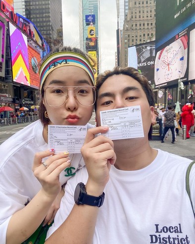 และนอกจากได้ไปเที่ยวแล้ว ทันทีที่ไปถึงก็ได้ฉีควัคซีนโมเดอร์นาเป็นเข็มแรกแล้วด้วย โดยทั้งคู่ได้รีวิวผ่านอินสตาแกรมของตัวเอง ทั้งจียอนที่บอกว่าได้ฉีดแล้วแต่เศร้าใจมากๆ ว่า ทำไมการฉีด วัคซีนที่นี่มันอะไรจะง่ายขนาดนี้ ส่วนหนุ่มฮั่น ที่ติดแฮชแท็กไว้ด้วยว่า #ภาษีก็ต้องจ่ายวัคซีนดีๆ ก็ไม่มีให้ฉีด และยังถามว่าทำไมต้องเสียเงินบินมาฉีดวัคซีนถึงที่นี่? และระบายความรู้สึกถึงเรื่องวัคซีนไว้ด้วย