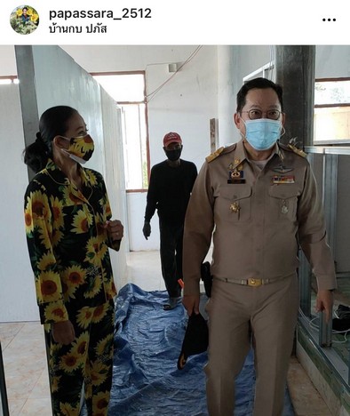 “วันนี้กบและท่านนายอำเภอสองพี่น้อง กำนัน ผู้ใหญ่บ้าน จิตอาสา มาช่วยกันทำโรงบาลสนาม 50 เตียงวัดราง สะแกสูง ต.บางเลนค่ะ เราทุกคนต้องช่วยกัน สู้ไปด้วยกันไม่ทิ้งกัน# โควิด19เราจะสู้ไปด้วยกัน