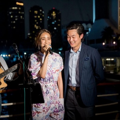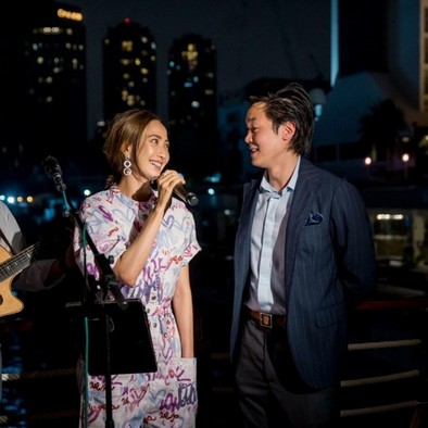 ในภาพเผยให้เห็น ชาย-หญิง คู่รัก ที่เห็นเพียงช่วงขา ฝ่ายชายใส่กางเกงขายาวสีดำ ส่วนฝ่ายหญิง สวมกระโปรวสีขาวพริ้วไหว ยืนจับมือกันท่ามกลางชายหาด พร้อมข้อความภาษาอังกฤษว่า Only in a relationship with Time that space exists.