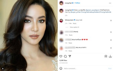 “Make up คุณกรีน @green_ausadaporn รำนำในตำนาน Hair by @super_arthair #nongchatmakeupthailand #nongchatbride”