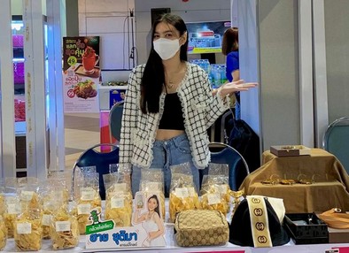 ซึ่งเธอเริ่มจากการนำของของตัวเองไปลงขายทางกลุ่ม Facebook จนเริ่มเห็นช่องทางในการหารายได้จนมาถึงการมีธุรกิจเล็กๆ อย่าง “กล้วยไฟเขียว” กล้วยสูตรพิเศษจากคุณแม่ของเธอ ที่ใครๆ ก็พูดเป็นเสียงเดียวกันว่าอร่อยจนเบรกไม่อยู่ ซึ่งสาวฮายได้เสียงตอบรับที่ดีมาก ด้วยแรงสนับสนุนของทุกคนทำให้เธอสามารถผ่านวิกฤตในครั้งนี้ไปได้ และสามารถมาออกบูธขายของในฐานะแม่ค้าได้อย่างเต็มตัว
