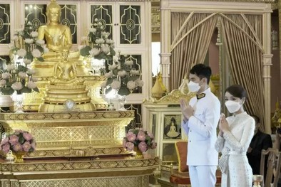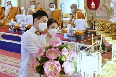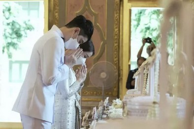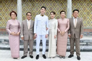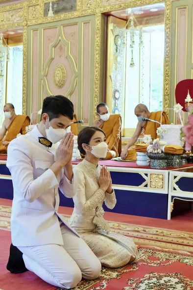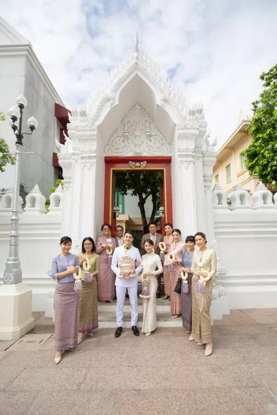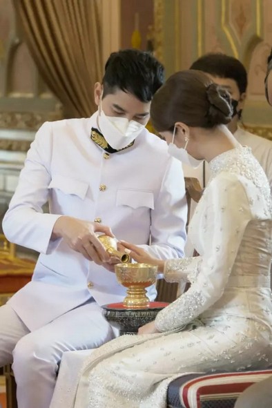 โดยว่าที่เจ้าสาวมาในลุคชุดไทยบรมพิมานประยุกต์สุดแสนสง่างามชุดนี้ มีมูลค่ากว่า 5 แสนบาท ส่วนว่าที่เจ้าบ่าว ไอซ์ รัชชสิทธิ์ สวมชุดขอเฝ้าดูสง่างาม อบอวลไปด้วยรอยยิ้มและความสุขของคู่บ่าวสาว พร้อมรอชมภาพสวีตหวานวันฉลองมงคลสมรสในวันอาทิตย์ที่ ๑๗ กรกฎาคม ๒๕๖๕ นี้ ณ Four Seasons Hotel Bangkok
