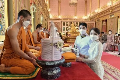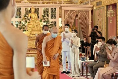 เช้าวันนี้ (๙ ก.ค. ๖๕) ทั้งคู่ได้ถือเอาฤกษ์งามยามดี เข้าเฝ้ากราบขอประทานพรและรับน้ำพระพุทธมนต์จาก สมเด็จพระอริยวงศาคตญาณ สมเด็จพระสังฆราช สกลมหาสังฆปริณายก เพื่อความเป็นสิริมงคลสูงสุดของชีวิตคู่ และประกอบพิธีทางพระพุทธศาสนา โดยมีพระสงฆ์ร่วมเจริญพระพุทธมนต์ พร้อมกับได้ถวายภัตตาหารเช้าและถวายเครื่องสังฆทาน ณ พระวิหาร วัดราชบพิธสถิตมหาสีมารามราชวรวิหาร ภายในงานบรรยากาศชื่นมื่นไปด้วยความรักความอบอุ่นของทั้งสองครอบครัว และมีคุณพ่อคุณแม่ฝ่ายเจ้าสาว และคุณพ่อคุณแม่ฝ่ายเจ้าบ่าว พร้อมด้วยญาติคนใกล้ชิดในครอบครัวร่วมยินดี แอร์-ไอซ์ กับวันสำคัญการเริ่มต้นชีวิตคู่ร่วมกัน