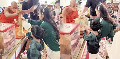 ก่อนจะโพสต์ภาพกับครอบครัว น้องเรซซิ่ง ลูกชาย นาฟ ฉัฐนันท์ หลานสาว และผู้กองไอซ์ ขณะไปทำบุญถวายสังฆทาน ถวายเทียนพรรษาที่วัดปริวาสราชสงคราม พร้อมข้อความว่า เอาบุญมาฝากคับ #ขอให้ทุกคนโชคดี