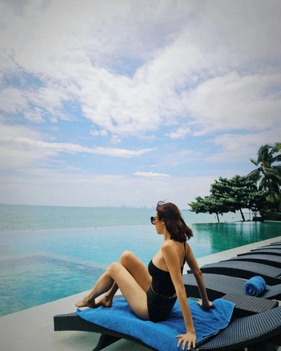 และจากภาพของ คริส หอวัง นอกจากจะได้วิวสวยงามของสถานที่แล้ว ยังได้เห็นภาพสุดแซ่บของเธอที่มากับชุดบิกินี่สีชมพูฉ่ำๆ เป็นการเซลฟี่หน้ากระจกของตัวเอง
