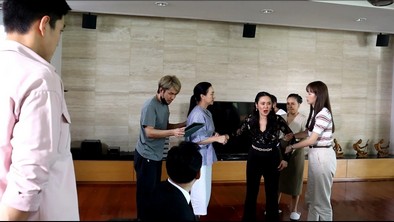 ฉากนี้คนเยอะเรื่องยาวเช่นเคย ตามสูตรของบ้านนี้ว่าเล่นใหญ่ไฟลุก ทุกคนครบเต็มห้องโถง ฟิวส์ ผกก.ซ้อมยาวให้ทุกคนเข้าใจคิวและเหตุการณ์รวมทั้งหมด ทุกคนต้องตั้งสติสูงมากเพราะบทเยอะและมีจังหวะพูดกันทุกคน ต้องจำคิวกันวุ่นวาย แต่คนที่หนักก็หนีไม่พ้นพี่ใหม่ ที่ต้องฟาดทุกคนเหมือนเดิมทั้ง กระทิง ,พี่แหม่ม , พี่ก้อย และบรรดาลิ่วล้อทั้งหลาย การถ่ายทำต้องแบ่งถ่ายเป็นกรุ๊ปๆ เรียงเหตุการณ์ ปัญหามีทุกรูปแบบทั้งคนเยอะ บทยาว จังหวะรับส่งของแต่ละคน