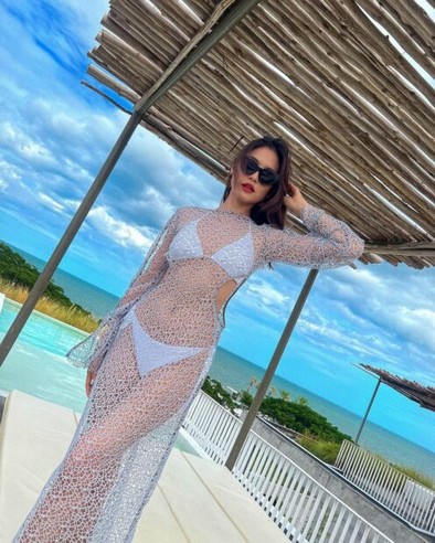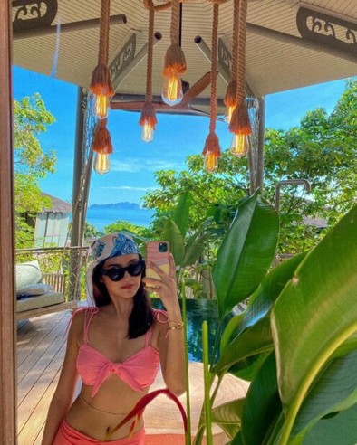 มาถึงลุคที่มีความเซ็กซี่ไม่แพ้กัน ซึ่งเลือกหยิบยกเอาชุดบิกินีตัวจิ๋วสีชมพูมาใส่ มีเพิ่มความสวยสับด้วยผ้าผูกผมเล็กน้อย ทำเอาคนเห็นใจสั่นระรัวหนักมาก ยิ่งชุดเผยให้เห็นหน้าท้องแบนราบยิ่งเซ็กซี่ไม่มีพักจริงๆ แถมเธอยังใส่แคปชั่นทะเล้นๆไปอีก ไม่หลงรักยังไงไหว