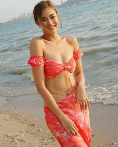 ต่อด้วยลุคแซ่บแบบสับ กับชุดบิกินีวันพีซสีส้ม เหลือง ซึ่งเว้าให้เห็นรูปร่างสุดเป๊ะ ทั้งสะโพก เอว และขาเรียวๆ ทำเอาแฟนคลับต้องใจสั่นระรัวไปกับความเซ็กซี่นี้ แถมเธอยังพ่วงแคปชั่นอ้อนอย่าง “เธอชอบทะเลหรือชอบเรา” อื้อหื้ออยากตะโกนไปว่า ชอบเธอมากที่สุด