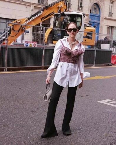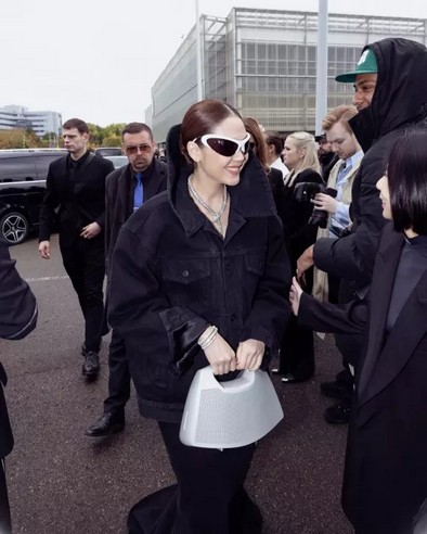 ส่วนอีกลุค ชมพู่ มาในมาด All Black เท่ ทรงพลังชุดโททัลลุค Haute Couture ของ BALENCIAGA มาชมแฟชั่นโชว์ของ BALENCIAGA ต่อด้วยโชว์ GIVENCHY งานนี้จัดเต็มกับแฟชั่นสุดแนว ด้วยการแมตช์ เสื้อเชิ้ตโอเวอร์ใส่สีขาว จาก Vetements สวมทับด้วยบรา จาก Jean Paul Gaultier และกางเกงขาม้าสุดโก้ จาก Jacquemus กระเป๋า Dior vintage และ รองเท้า Balenciaga.