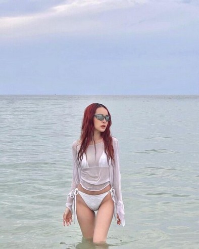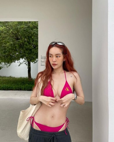 เปิดลุคมาด้วยชุดสุดจี๊ด เห็นแล้วตาตื่น เป็นชุดบิกินีสีชมพูฉ่ำๆ ทำผมสีแดง โพสต์บิดเอวโชว์หน้าท้องสุดลีน บอกเลยว่าแซ่บสุดๆ แถมหยิบแว่นมาคาดผม ให้ลุคมีความเฟียสขั้นสุด อินเนอร์การจิกกล้องทะลุเลนส์ไปเลยจุดนี้...
