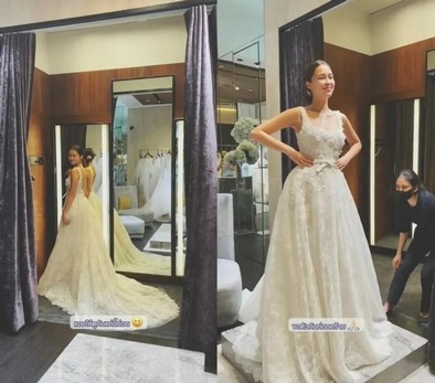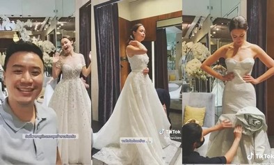 "วันนี้พามาดูน้องลองชุดเจ้าสาวกันครับ ผมนี้ตื่นเต้นมากเลย และขอแนะนำแพลนเนอร์ของเราคือคุณแป้ง ลองกันหลายชุดเลย เฮฮากันมากครับ เลือกแนวกันไม่ถูกเลย ผมชอบแทบทุกชุดเลยครับ จะเป็นชุดไหน ลองติดตามกันวันจริงได้เลยนะครับ แอบให้ดูกันแค่นี้ก่อน ขอตัวก่อน"