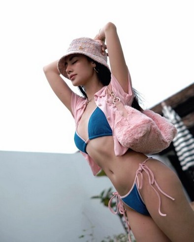 ต่อด้วยลุคที่ยังคงความเผ็ดไว้ไม่พัก กับการหยิบเอาชุดบิกินีสีฟ้าตัวจิ๋วมาใส่นั่งถ่ายรูปอวดขาเรียว ผิวสวยหน้าห้องพักแบบชิลชิล แต่ความฮอตที่สาดมาไม่มีชิลแบบที่เห็นเลยสักกะนิด ยิ่งมาถ่ายท้าแดดแบบสับๆตามสไตล์เธอแล้วบอกเลยใครก็ต้านไม่อยู่