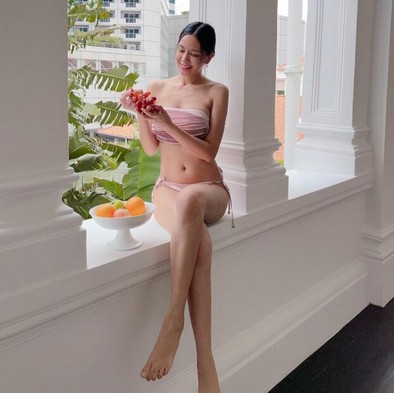 ปิดท้ายด้วยลุคที่ทำใจสั่นเบาๆ กับการใส่ชุดทูพีชสีชมพูมาเก็บภาพบรรยากาศกลางสระน้ำ งานนี้ความเซ็กซี่ทะลุปรอทหนักมาก เพราะเผยให้เห็นอกตู้มๆรับกับหน้าท้องแบนราบกันแบบสับๆ ทำเอาใจคนที่เห็นเต้นไม่เป็นจังหวะเลยทีเดียว