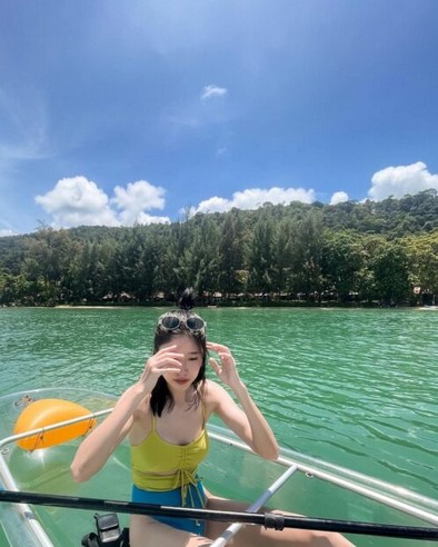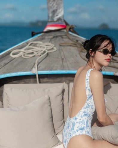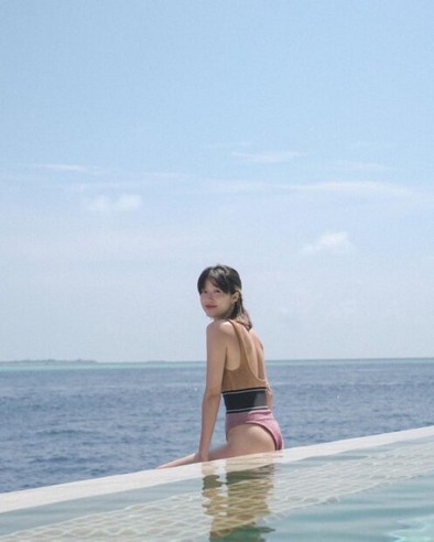 ยิ่งมองยิ่งแซ่บ แถมยังแจกความเซ็กซี่ ใส่เป็นวันพีซสุดขยี้สีดำ อีกทั้งยังแหวกอกเว้าสูง โชว์บั้นท้ายเด้งๆ ทำแฟนๆ เห็นแล้วต้องใจเย็นกันเลยจริงๆ บวกกับวิวด้านหลังน้ำทะเลใสมาก