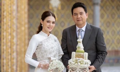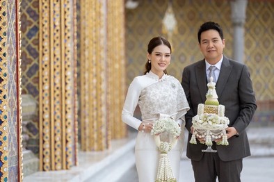 ส่วนชุดว่าที่เจ้าสาวที่สวมใส่เข้ารับประทานน้ำพระพุทธมนต์ จากสมเด็จพระสังฆราช นั้น เป็นชุดจากร้าน เสื้อ Vanus First มูลค่าชุดกว่า 200,000 บาท โดยชุดนี้เป็นผลงานการสร้างสรรค์ขึ้นอย่างวิจิตรบรรจง ซึ่งทั้งคู่จะจัดงานพิธีมงคลสมรส ขึ้นในวันพุธที่ 23 พ.ย. 2556 ที่จะถึงนี้ ณ.โรงแรมแมนดาริน โอเรียนเต็ล กรุงเทพ