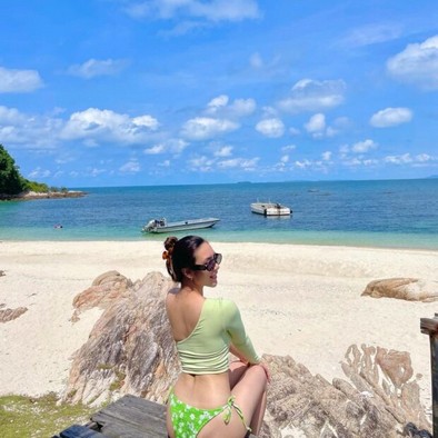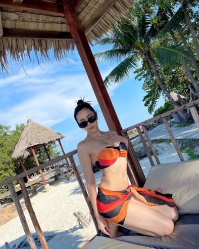 ต่อด้วยแซ่บแบบไฟลุก แค่เห็นสีชุดก็ร้อนระอุแล้ว ใส่แค่บิกินีเกาะอกตัวจิ๋วสีส้มแดง ลุคนี้เร่าร้อนแรงแซงทางโค้งมาก ใส่คู่กับแว่นกันแดด เพิ่มความแมตช์ให้ลุคแซ่บจึ้งขึ้นไปอีก งานนี้บอกเลยว่า แฟนๆ แห่คอมเมนต์แตกกันรัวๆ