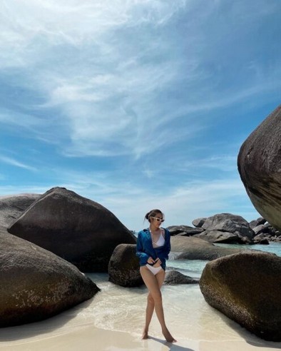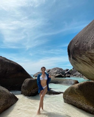 ลุคนี้ก็แซ่บเสี้ยวเปรี้ยวไม่แพ้ลุคอื่นแน่นอน มาพร้อมกับบิกินีสีขาวเว้าสูงปรี๊ด เห็นแล้วต้องร้องซี้ดจนต้องซู้ดปาก เช็ดเลือดกำเดาเลยจริงๆ เพราะโชว์หุ่นเพิ่มความแซ่บเผ็ดทวีคูณสิบ