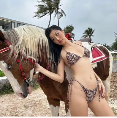 ล่าสุดเธอออกมาอวดรูปในชุดบิกินีลายม้าลายซึ่งเธอโพสท่าเริ่ดๆใกล้ๆม้าจริงที่หัวหิน ซึ่งบอกเลยว่าสวยเด่น สวยมาก สวยจนหลายคนตะลึงทีเดียว ไหนจะลุคที่เธอเปลือยด้านบนแล้วใส่กางเกงสีชมพูด้านล่างอีก ที่บอกเลยว่าลงรูปแค่ 2 รูปแต่คนกรี๊ดหนักมากไปสามโลกทีเดียว ซึ่งหลังจากมีการอัพเดทข้อความไป ก็มีชาวเน็ตมากดไลค์ ปาอีโมติคอนหัวใจให้อย่างมากมายทันที ไม่อยากพูดเยอะเนอะ ดูรูปดีกว่า เพราะใจละลายแน่นอนจ้า
