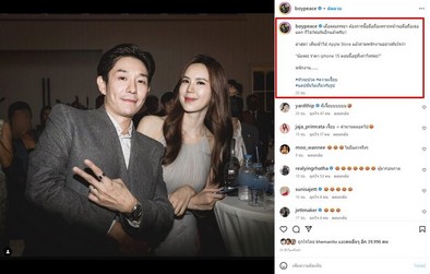ล่าสุดภรรยาคนสวยสร้างเรื่องอีกแล้ว โดย หนุ่มบอย โพสต์รูปคู่ พร้อมเขียนข้อความเล่าความโก๊ะของ สาวเจี๊ยบ ขณะไปเลือกซื้อโทรศัพท์เครื่องใหม่ ระบุว่า “เมื่อคุณภรรยา ต้องการซื้อมือถือเพราะหน้าจอมือถือเธอแตก ก็โชว์ฟอร์มอีกแล้วครับ!! ล่าสุด!! เดินเข้าไป Apple Store แล้วถามพนักงานอย่างมั่นใจว่า “น้องคะ ราคา iPhone 15 ตอนนี้อยู่ที่เท่าไหร่คะ?” พนักงาน……. #หัวจะปวด #ความเจี๊ยบ #แคปชั่นไม่เกี่ยวกับรูป”