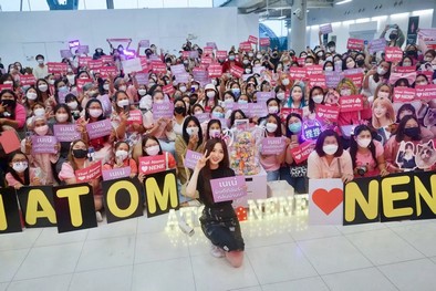 และวันที่เธอบินกลับมาถึงเมืองไทยในรอบ 3 ปีเมื่อวันอาทิตย์ที่ผ่านมานั้น บรรยากาศที่สนามบินเต็มไปด้วยการต้อนรับที่อบอุ่นของเหล่า ‘อะตอม’ ที่ไปรอต้อนรับเธอกันตั้งแต่เช้า และมีการทำโปรเจกต์ต่างๆ รวมถึงการร้องเพลง มอบดอกไม้และถ่ายภาพร่วมกัน รวมถึงสื่อต่างๆ ที่ไปรอทำข่าวการกลับบ้านของเธอมากมายหลายสื่อเลยทีเดียว เพราะเนเน่ พรนับพัน เป็นอีกหนึ่งความภาคภูมิใจของคนไทยเราด้วย