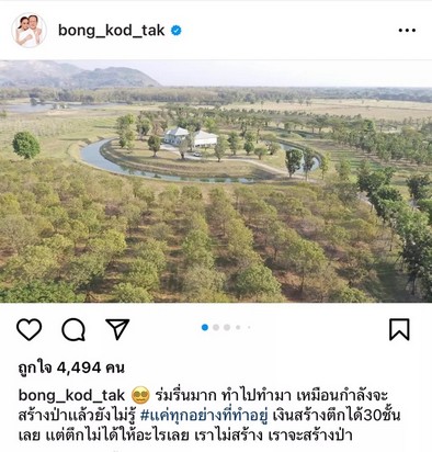 ล่าสุด ตั๊ก ได้อัปเดตไร่เบญจรงคกุลที่ตอนนี้เริ่มร่มรื่นมาก คล้ายกับสร้างผืนป่าเลยทีเดียว โดยเจ้าตัวได้เขียนแคปชั่นว่า "ร่มรื่นมาก ทำไปทำมา เหมือนกำลังจะสร้างป่าแล้วยังไงไม่รู้ #แค่ทุกอย่างที่ทำอยู่ เงินสร้างตึกได้30ชั้นเลย แต่ตึกไม่ได้ให้อะไรเลย เราไม่สร้าง เราจะสร้างป่า"