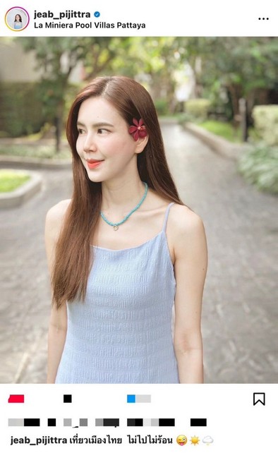 โดยเฉพาะอย่างยิ่งทางด้านของ เจี๊ยบ พิจิตตรา นักแสดงสาวคนสวย ที่ในทริปนี้เจ้าตัวลงทุนปล่อยของแจกความสดใสในสไตล์ตัวเอง ให้แฟนๆ ที่ติดตามอินสตาแกรม @jeab_pijittra ได้ส่องกันจนตาแฉะ ด้วยคอลเลคชั่นชุดคอสตูมสุดน่ารัก ที่ทั้งหวาน ที่ทั้งละมุน ดีต่อใจแบบสุดๆ พร้อมแคปขั่นฮา การันตี เจี๊ยบเจ้าแม่แคปชั่น เที่ยวเมืองไทย ไม่ไปไม่ร้อน