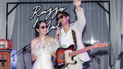 สำหรับบรรยากาศในงานอบอวลไปด้วยความอบอุ่นจากพี่น้องในวงการ ที่ต่างพากันมาร่วมแสดงความยินดีกันอย่างคับคั่ง โดยเฉพาะแก๊ง Tattoo Colour เพื่อนเจ้าบ่าว ที่มาแบบหล่อเนี้ยบกันทุกคน พร้อมด้วยพี่น้องในวงการเสียงเพลงคับคั่งสลับกันขึ้นเวที ตบท้ายโมเมนต์น่ารัก “หนึ่งในสินสอดสุดซึ้งวันนี้ เป็นของขวัญที่เต็มไปด้วยความทรงจำแสนโรแมนติก ที่เจ้าบ่าวมอบให้เจ้าสาวคือ กีตาร์ Fender ที่ใช้เล่นเพลงรักแรกพบ”