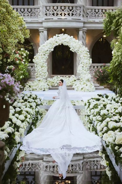 โดยในงานพิธีมงคลจัดขึ้นที่ตึก Saint Hall ซึ่งเจ้าสาวเดินเข้าพิธีมาด้วยใบหน้าที่แสนสวยงามจากฝีมือ ป้อม - วินิจ บุญชัยศรี เมคอัพอาร์ติสต์อันดับหนึ่งของไทย พร้อมถือช่อบูเกต์ Lily of the Valley ซึ่งเป็นที่นิยมในหมู่เจ้าสาวในราชวงศ์ยุโรปถือในงานแต่ง อาทิ เจ้าหญิงเกรซ แห่งโมนาโก, คามิลลา ดัชเชสแห่งคอร์นวอลล์ และเจ้าหญิงเคท มิดเดิลตัน แห่งเวลส์ รวมถึงเซเลบดาราชื่อดังทั่วโลกอีกด้วย โดยมีอาจารย์แชมป์ สิทธิโชค เสรีธรณกุล ผู้ก่อตั้งมูลนิธิไบรท์โรแมนซ์ มาเป็นศิษยาภิบาลในการประกอบพิธีการ ร่วมด้วยคุณพ่อคุณแม่ และครอบครัวของทั้ง 2 ฝ่ายมาร่วมพิธีกันพร้อมหน้าพร้อมตา