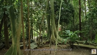 “ที่ตรงนี้จากเดิมเป็นพื้นที่โล้นๆ โล่งๆ เลย ผมยืนยันเลยว่าป่ามันปลูกได้ มันปลูกได้จริงๆ ทุกต้นผมปลูกมาเองกับมือ แม้กระทั่งต้นกลด และต้นยวนผึ้ง ที่ใช้ 5 คนโอบ ผมก็ปลูกเองกับมือตั้งแต่ต้นเท่านี้ (ยกนิ้วชี้)
