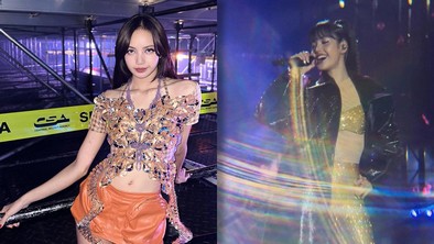 ซึ่งก่อนที่เธอจะขึ้นเวที แฟนๆ ในอารีน่าก็ตะโกนเรียก ลิซ่า จากนั้น ลิซ่า แต่งกายด้วยชุดสีทองอันน่าทึ่งที่ส่องประกายระยิบระยับภายใต้แสงไฟบนเวที มีเสน่ห์และมีสไตล์ เครื่องแต่งกายของเธอผสมผสานระหว่างเก๋ไก๋ทันสมัยและความสง่างามคลาสสิก เติมเต็มการแสดงตนแบบไดนามิกของเธอได้อย่างสมบูรณ์แบบ ทำให้การแสดงของเธอเป็นการแสดงดนตรีและการแสดงภาพที่น่าตื่นตา