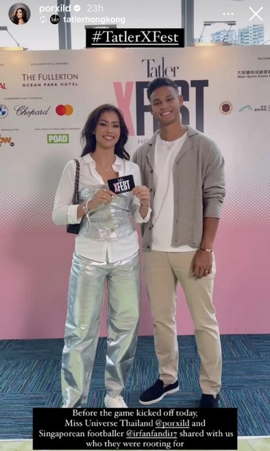 แฟนหนุ่มคนนี้จะเป็นใครไปไม่ได้ นอกจาก "อิรฟาน ฟานดี้" นักฟุตบอลดาวรุ่งของ บีจี ปทุม ยูไนเต็ด และปราการหลังของทีมชาติสิงคโปร์ ที่ตัดสินใจออกงานคู่โชว์ความหล่อกล้ามแน่น ก่อนจะถึงช่วงไทยลีกเลก 2 เปิดทำการ ออกอีเวนท์คู่ในฐานะแขกรับเชิญของ Tatler Asia สื่อแฟชั่นยักษ์ใหญ่ของเอเชีย