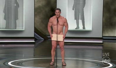 ซึ่งหลังจิมมี่เล่าย้อนได้กล่าวต่อว่า "คุณลองจินตนาการดูนะ ถ้ามีผู้ชายเปลือยกายวิ่งผ่านเวทีในวันนี้" และในเวลาต่อมา "John Cena (จอห์น ซีนา)" นักมวยปล้ำ และนักแสดง (อาทิ ผลงานภาพยนตร์ F9 The Fast Saga) ได้โผล่หัวออกมาจากหลังฉากของเวที ซึ่งเขาควรจะวิ่งเปลือยออกมา แต่เขากลับเปลี่ยนใจ เพราะ "นี่มันเป็นงานสุดอลังการเลยนะ" และบอกว่า "male body is not a joke (ร่างกายของผู้ชายไม่ใช่เรื่องที่น่าขำขันนะ) ปกติตอนฉันต่อยมวย ก็ไม่ได้แก้ผ้าสักหน่อย"
