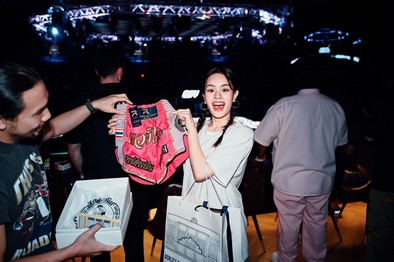 ในการเดินทางมาที่เวทีราชดำเนิน นายศรัณย์ ลดาวรรษ์ ประธานเจ้าหน้าที่การตลาด บริษัท โกลเบิล สปอร์ต เวนเจอร์ส จำกัด (GSV) ได้ให้การต้อนรับ และยังได้มอบของที่ระลึกคือกางเกงมวยไทยให้กับสองศิลปิน Pink Sweat$ และ แอลลี่-อชิรญา