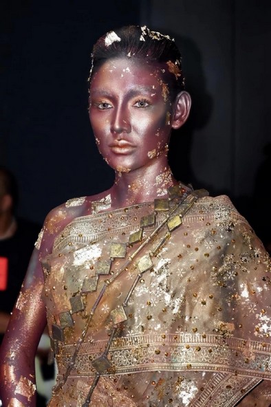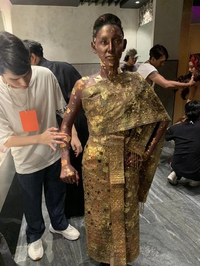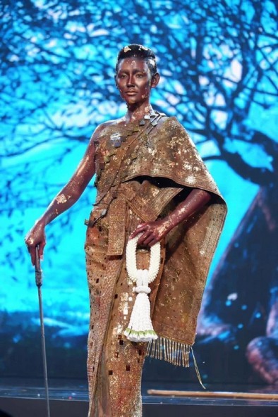 โดยจะเห็นได้ว่าเหล่าทีมงานที่ดูแลนางงามนั้น ทำงานกันอย่างละเอียดมากเลยทีเดีย เพื่อเก็บรายละเอียดให้ได้มากที่สุด ซึ่งแรงบันดาลใจคือ "อนุสาวรีย์ย่าโม" ที่ได้หล่อขึ้นมาด้วยทองแดงรมดำ สูง 185 เซนติเมตร หนัก 325 กิโลกรัม ประดิษฐานอยู่บนฐานไพที สี่เหลี่ยมย่อมุมไม้สิบสองสูง 250 เซนติเมตร
