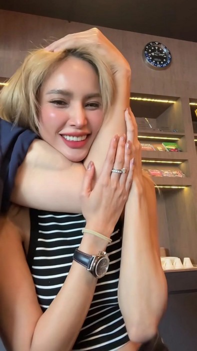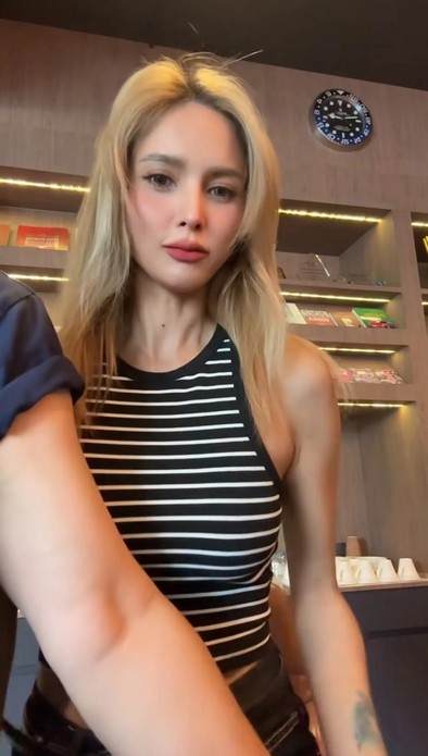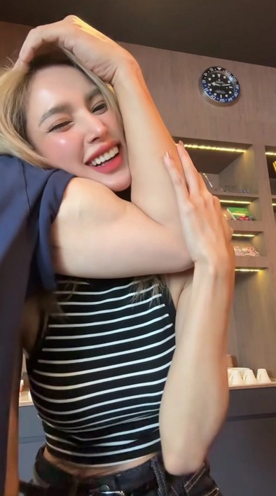 ซึ่งในคลิปดังกล่าวเป็นคลิปที่ อุ้ม จับกล้ามโตเป็นมัดๆ ของแฟนหนุ่ม ก่อนจะบีบเบาๆ เชิงหยอก และเอาแก้มของตัวเองไปแนบกับกล้าม ทำให้รู้เลยว่า กล้ามใหญ่แทบจะเท่าหน้าของ อุ้ม แล้ว