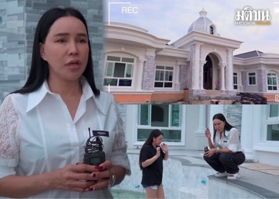จากนั้นส้มเช้งและลูกสาว ก็ได้พาไปทัวร์ข้างในบ้าน ที่ต้องบอกเลยพื้นที่ข้างในบ้านกว้างสุดๆ ไม่ว่าจะเป็นโถงรับแขก ห้องนอน ห้องน้ำ และสระว่ายน้ำที่สร้างใกล้จะเสร็จแล้ว แถมยังมีโรงรถ เทวาลัย ครัว ฯลฯ ที่กำลังสร้าง ซึ่งงานนี้แฟนๆ ก็ได้เข้ามาคอมเมนต์ชื่นชมความสวยของบ้านกันมากมาย