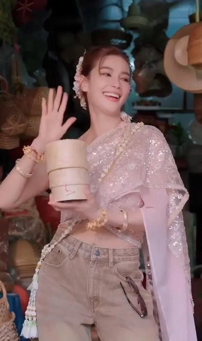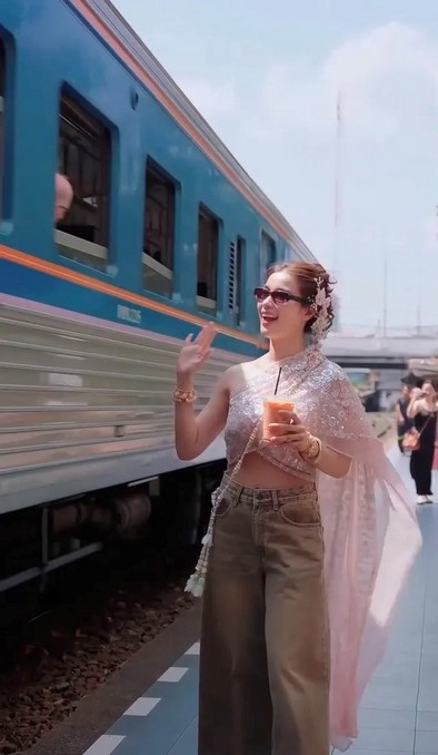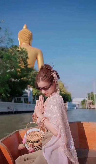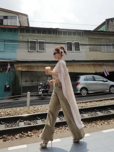 นอกจากนี้ ลุคห่มสไบของวิว ยังกลายเป็นไฮไลต์ที่แฟน ๆ พูดถึง ด้วยการผสมผสานแฟชั่นไทยเข้ากับไลฟ์สไตล์เมืองได้อย่างลงตัว สะท้อนเสน่ห์ความเป็นไทยในมุมใหม่ที่ร่วมสมัยและเข้าถึงง่าย จนหลายคนยกให้เป็นอีกหนึ่งอินสไปเรชันการแต่งตัวเที่ยวกรุง อีกหนึ่งไฮไลต์ที่แฟน ๆ โฟกัสไม่แพ้ลุคการแต่งกาย คือ งานผิวและงานตาของวิว ที่มาในโทนใสธรรมชาติ รับกับแสงแดดกลางวันของย่านเมืองเก่าได้อย่างลงตัว