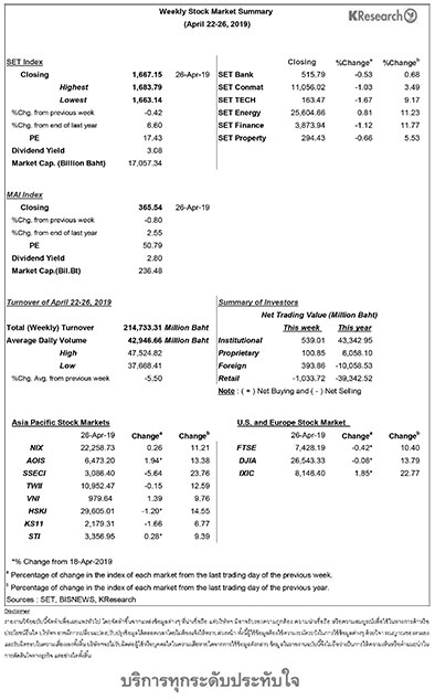 ศูนย์วิจัยกสิกรไทย 4 พฤษภาคม 2562