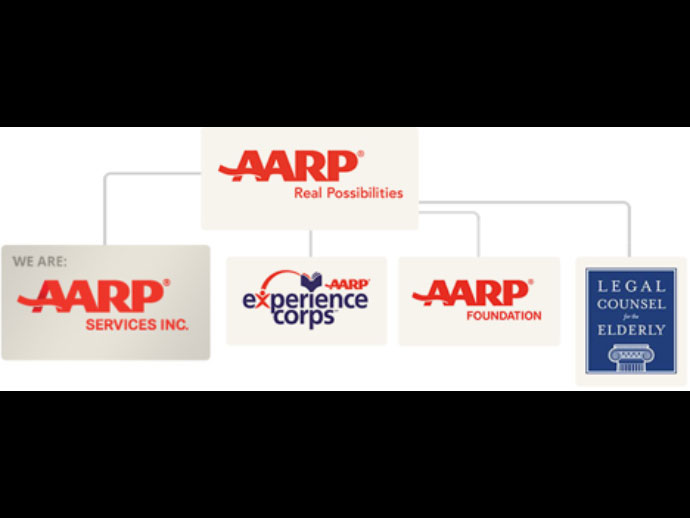 AARP มีองค์กรมากมายที่อยู่ภายใต้ ซึ่งจะประสานงานกันเพื่อช่วยในการประกอบกิจการช่วยเหลือสมาชิกขององค์กรอันได้แก่