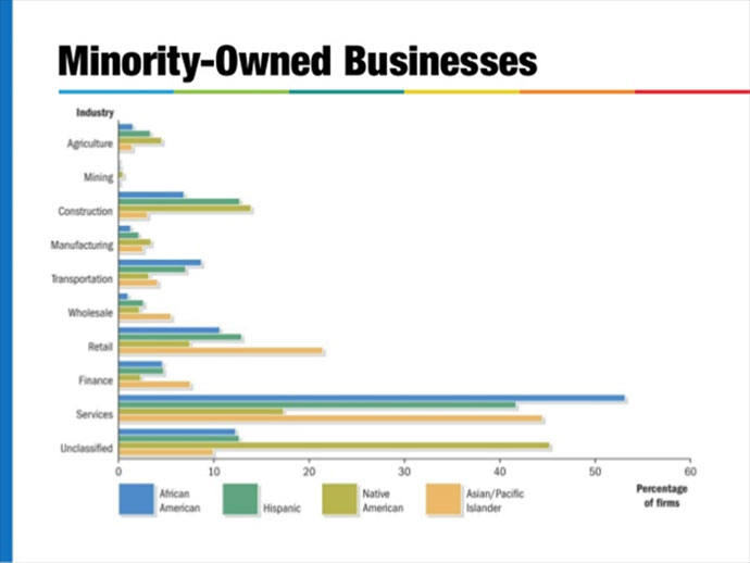 กลุ่มธุรกิจที่คนกลุ่มน้อยเป็นเจ้าของคือ ธุรกิจที่มีเจ้าของเป็นกลุ่มชนกลุ่มน้อยอันได้แก่ คนเชื้อสายเอเชีย คนผิวดำ คนละตินและคนอเมริกันอินเดียน ซึ่งความเป็นเจ้าของของคนกลุ่มน้อยในธุรกิจนั้นจะต้องมีอย่างน้อย 51% ไม่ว่าจะถือครองโดยบุคคลทั่วไปหรือนิติบุคคล หากเป็นบริษัทที่ถือครองโดยหุ้นผู้ถือหุ้นอย่างน้อย 51% จะต้องเป็นผู้ที่เป็นชนกลุ่มน้อย