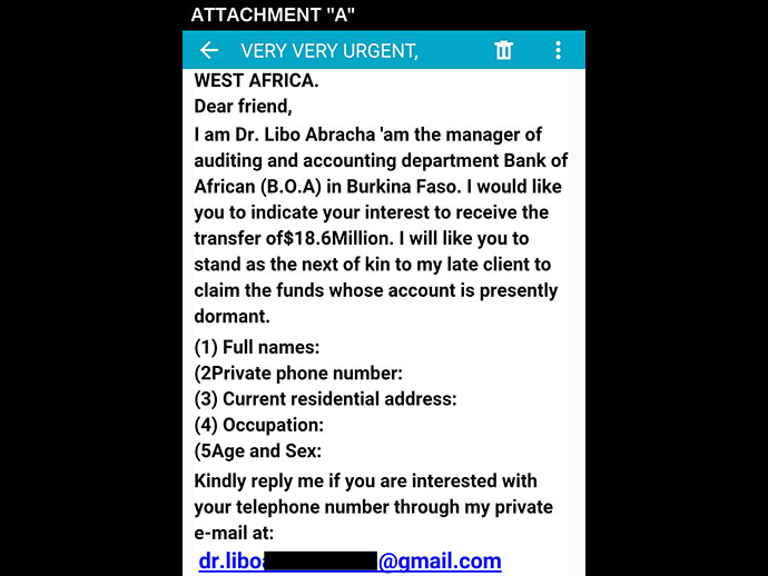 Okay, so let's examine why I know this email is spam, i.e., fake: