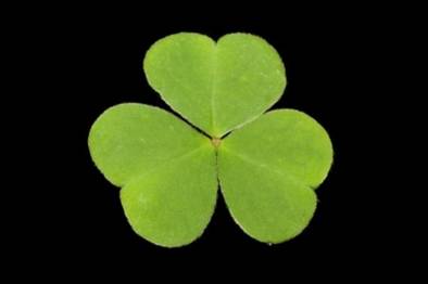สัญญลักษณ์อีกอย่างของวันเซ้นท์แพ็ททริคคือ ใบโคลเวอร์ (Clover) ที่มีสี่แฉก ปรกติในโคลเวอร์นั้นจะมีแค่สามแฉก (ใบแชมม็อคก็เป็นโคลเวอร์พันธุ์หนึ่งเช่นกัน) หากใครหาใบโคลเวอร์ที่มีสี่แฉกได้นั้นจะโชคดีเพราะสี่แฉกของใบโคลเวอร์หมายถึง ความหวัง ความศรัทธา ความรัก และความสุข