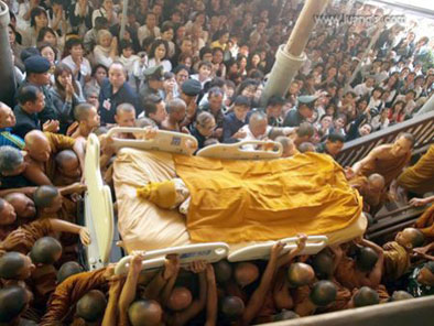 แม้ ณ วันนี้ ท่านพ่อได้ละสังขารไปแล้ว แต่ท่านพ่อจะสถิตอยู่ในดวงใจของลูก และดวงใจของคนไทยทั้งประเทศ และลูกเชื่อว่าเมตตาบารมีของท่านพ่อจะคุ้มครองปวงประชาชนคนไทยตลอดจนคุ้ม ครองประเทศไทยให้มั่นคง และมีความร่มเย็นเป็นสุข สำหรับลูก ลูกให้สัญญากับท่านพ่อว่าจะนำคำสั่งสอนของท่านพ่อที่จารึกอยู่ในใจของลูกมา ปฏิบัติ เพื่อให้ลูกเข้าสู่ทางสว่างอย่างแท้จริง " ...