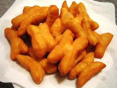 สมัยนั้น ชาวจีนนิยมรับประทานขนมอย่างหนึ่งซึ่งทำด้วยแป้งเอามาทอดน้ำมัน ได้มีประชาชนบางคนเอาแป้ง 2 ชิ้นมาบีบติดกันสมมติเป็นจอมกังฉินกับเมียของมัน นำไปทอดกินเพื่อระบายความแค้น