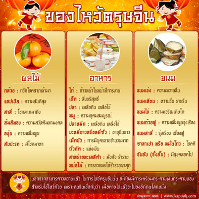 ทั้งนี้ สำหรับความหมายของ "ของไหว้วันตรุษจีน" ได้แก่...