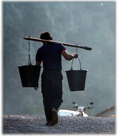 ชายจีนคนหนึ่งแบกถังน้ำสองใบไว้บนบ่าเพื่อไปตักน้ำที่ริมลำธาร ถังน้ำใบหนึ่งมีรอยแตก ในขณะที่อีกใบหนึ่งไร้รอยตำหนิ และสามารถบรรจุน้ำกลับมาได้เต็มถัง...แต่ด้วยระยะทางอันยาวไกล จากลำธารกลับสู่บ้าน....จึงทำให้น้ำที่อยู่ในถังใบที่มีรอยแตกเหลืออยู่เพียงครึ่งเดียว