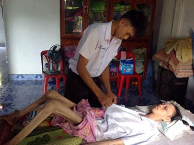 "สุด ยอดลูกกตัญญู" วันนี้คณะครูโรงเรียนพิบูลย์รักษ์พิทยา ออกเยี่ยมบ้าน นายศราวุฒิ เบ้าทองจันทร์ หรือ บอม นักเรียนชั้น ม.6 ไม่มีบ้านของตนเองอาศัยอยู่บ้านป้าที่อยู่บ้านดอนเขือง ตำบลบ้านแดง อำเภอพิบูลย์รักษ์ จังหวัดอุดรธานี ภาพที่ทุกคนเห็นคือแม่ซึ่ง เคลื่อนไหวไม่ได้เลย นอนบนเสื่อเก่าๆที่ปูบนแคร่ไม้ไผ่ มีถุงมือยางใส้น้ำรองแผ่นหลังกันแผลกดทับ ทุกคนอึ้งไม่รู้จะเริ่มต้นยังไง ไม่คิดว่าแม่จะมีอาการหนักขนาดนี้ ถ้าเลือกได้คงไม่มีใครอยากตกอยู่ในสภาพเช่นนี้ จากการสอบถามทราบว่าขณะนี้แม่อายุ 43 ปี มีลูกชายคนเดียวคือ บอม แม่เริ่มป่วยเมื่อปี 2542 มีอาการปวดหลังและขาซื้อยาชุดมากินเองนาน 4 ปี แรกๆก็หายปวดต่อมาไม่ดีขึ้นไปหาหมอจึงรู้ว่าเป็นโรคกระดูกพรุน ได้เข้ารับการรักษาที่โรงพยาบาลแต่ไม่ต่อเนื่องเพราะไม่มีเงินไปหาหมอ อาการทรุดหนักมาแลัว 4 ปีกว่าๆ ต้องนอนนิ่งๆอยู่กับที่ ภาระอันหนักอึ้งต้องตกอยู่ที่บอม เพราะพ่อสุขภาพไม่แข็งแรงทำงานหนักไม่ได้และต้องกินยาตลอดชีวิต บอมต้องตื่นแต่เช้า ต้มข้าวป้อนข้าวเช็ดตัวให้แม่ก่อนไปโรงเรียน กลางวันฝากปัาดูแล เลิกเรียนต้องรีบกลับบ้านเพื่อดูแลแม่ทุกๆวัน ตอนกลางคืนต้องออกหาปลา ได้กบ เขียด หนูนา มาขายเพื่อเป็นค่าอาหารเหลว นม แพมเพิร์สสำหรับแม่ ค่าอาหารกลางวันที่โรงเรีนน แต่เงินที่ได้เพียงน้อยนิดไม่พอกับค่าใช้จ่าย บางวันต้องอดอาหารบางวันเพื่อนๆก็แบ่งให้กิน เคยได้รับทุนการศึกษา แต่เงินที่ได้ก็หมดไป